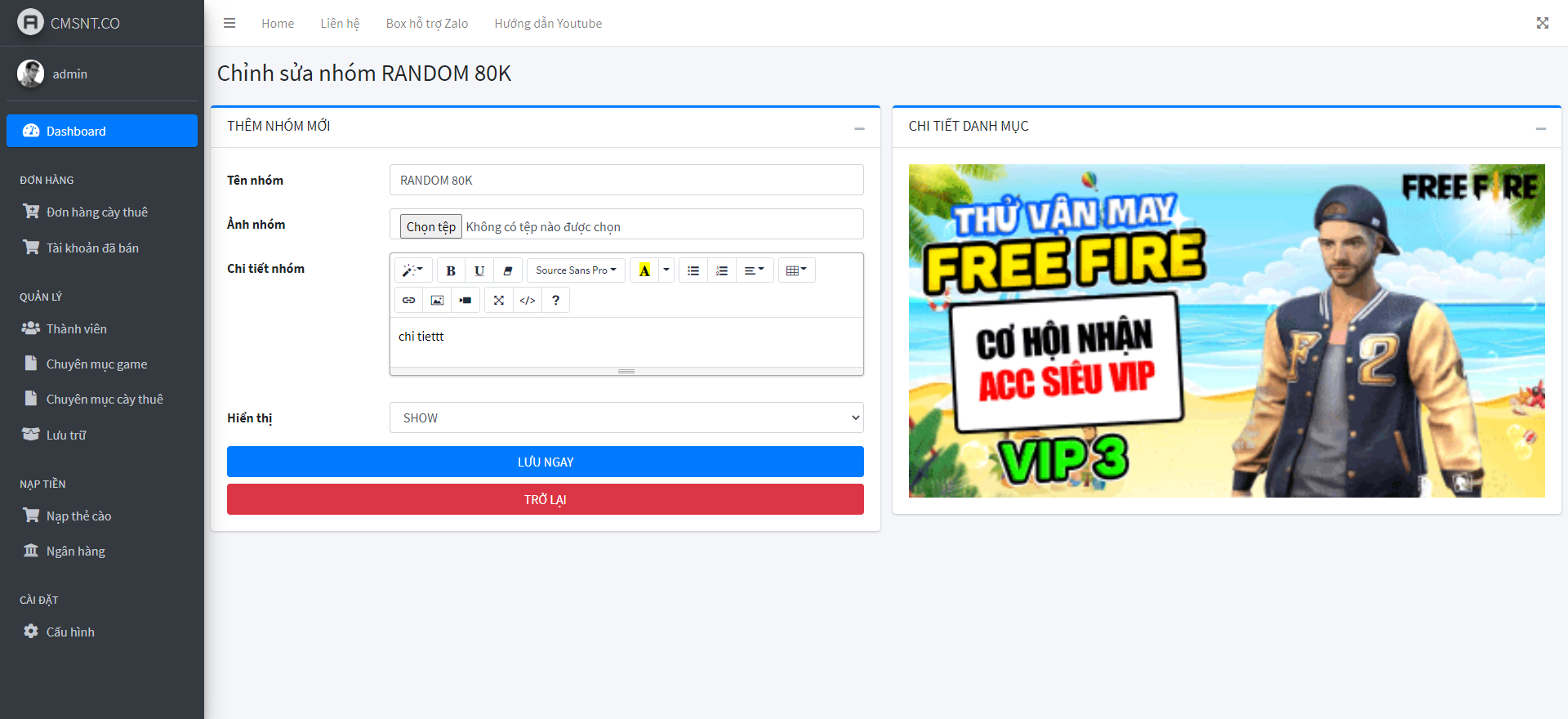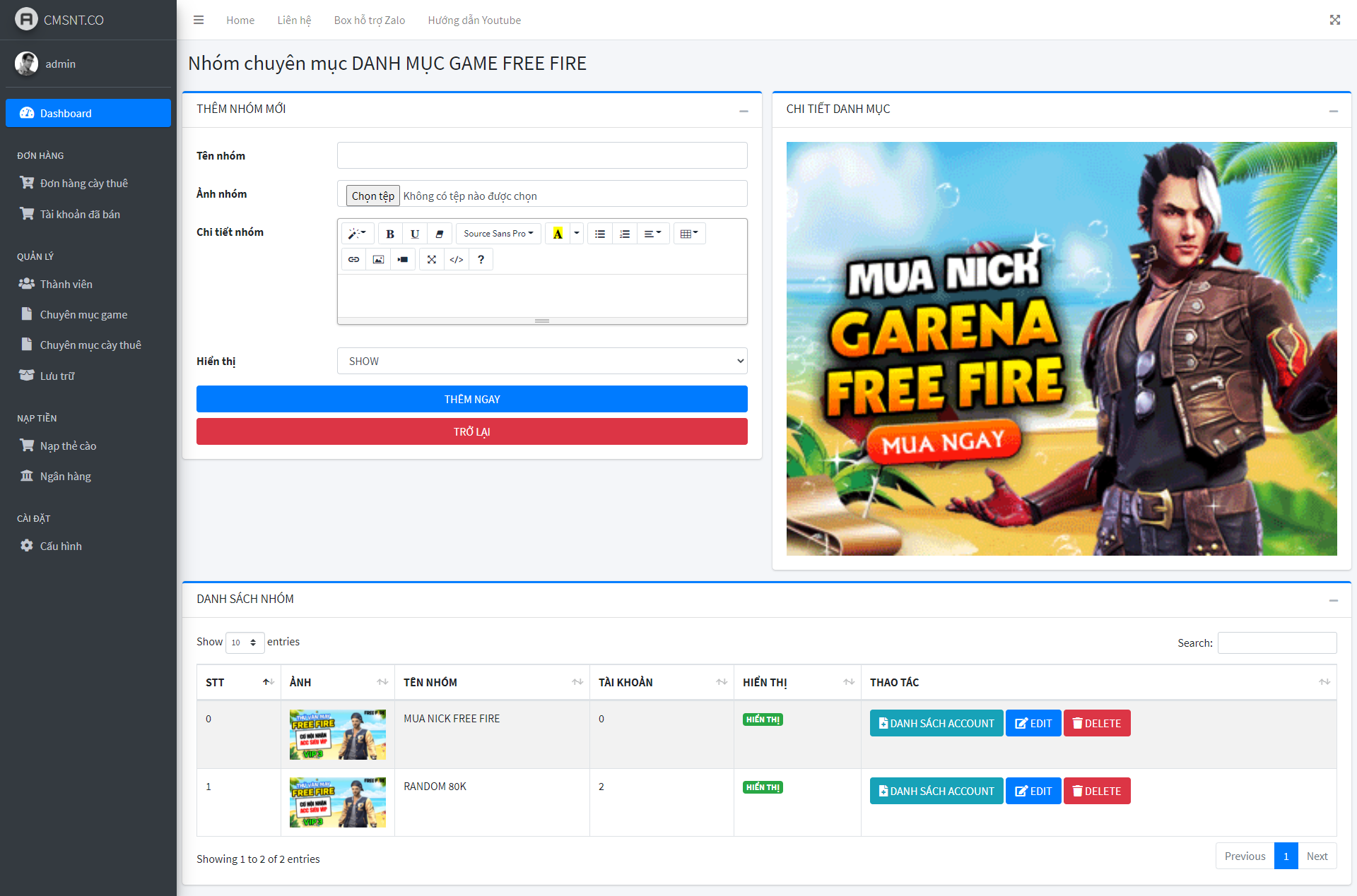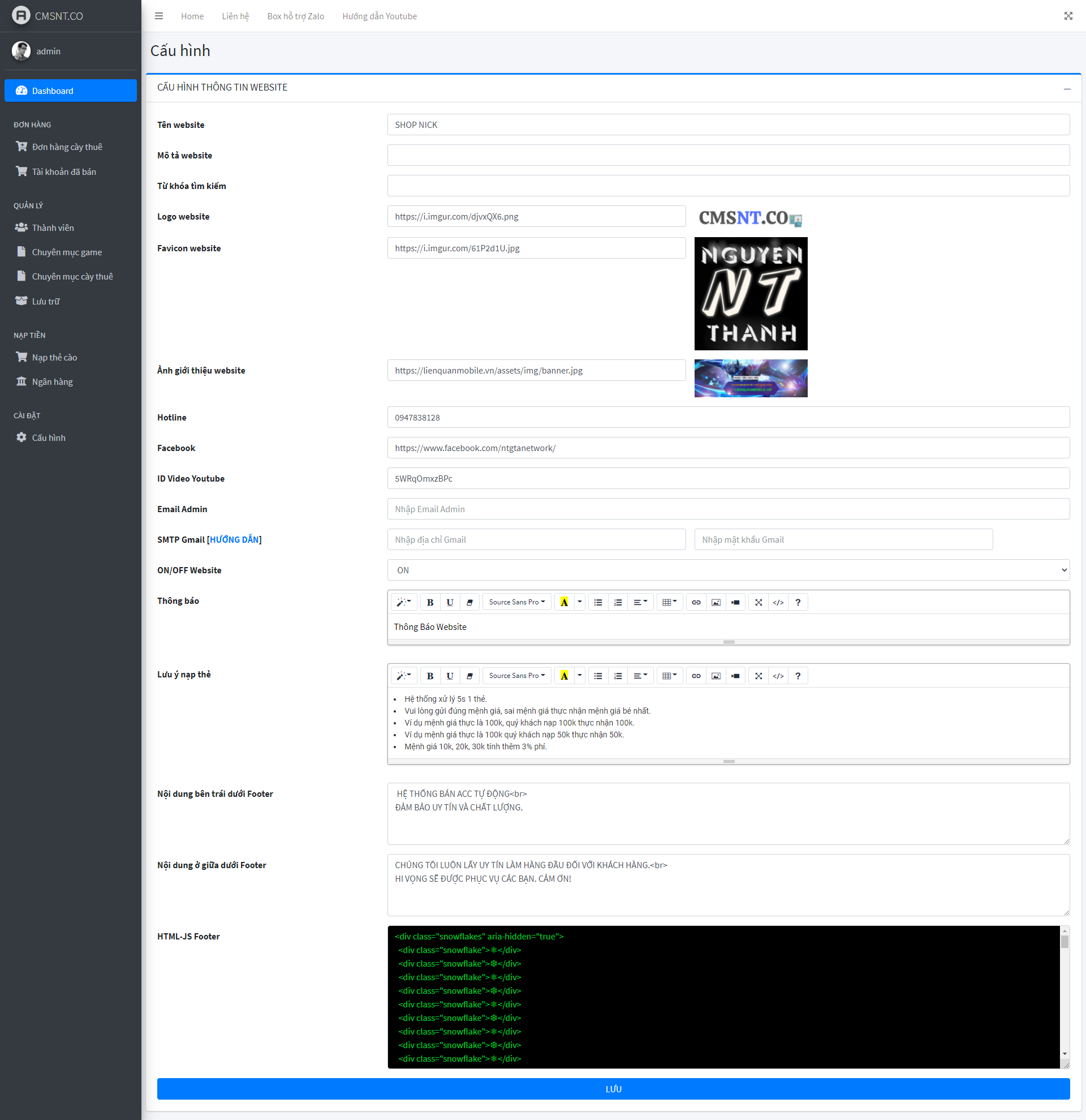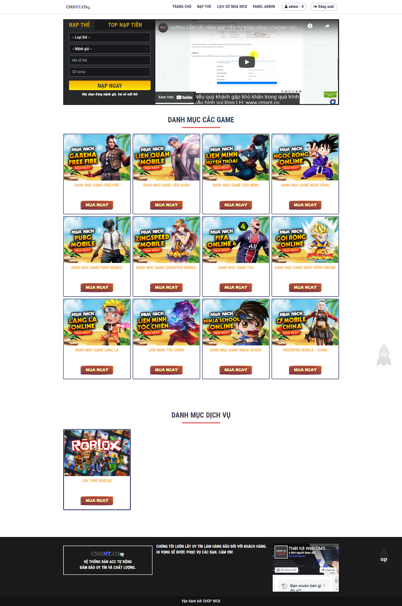 THIẾT KẾ WEBSITE BÁN ACCOUNT GAME TỰ ĐỘNG CÓ CHỨC NĂNG CTV