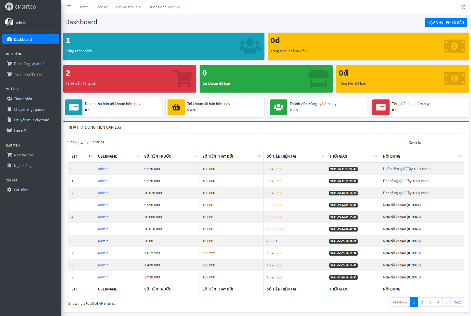 - Cập nhật phiên bản mới tại admin.