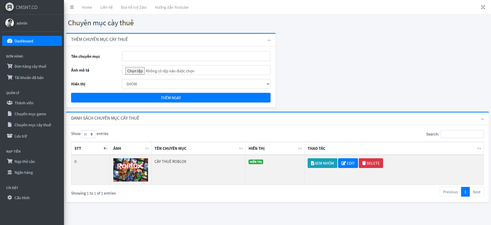 - Thêm, xóa, sửa nhiều loại game cần bán.